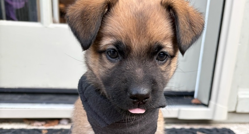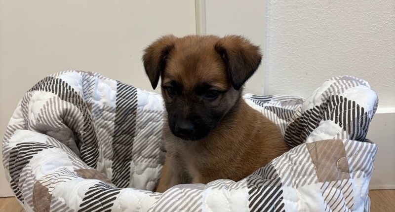 Breed: Mixed breed — mom is a chihuahua/pug and dad is a German shepherd mix