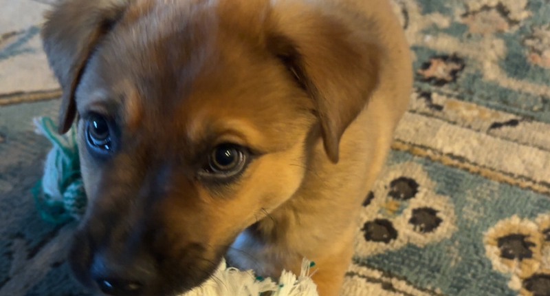 Meet The Duke! He’s pretty shy at first, but watching him come out of his shell with his playful puppy energy is the best. He’s doing well with potty training and we’re working on the kennel. He likes to hide under the bed or find his way under blankets. He’s getting along with our older dog, definitely wants to play with him and with us!