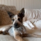 She’s a true Velcro dog who loves being close to her people. If you’re sitting on the couch working, don’t be surprised if she gently places her paw on your hand to remind you that she’s there and would love some attention. Once she’s had her cuddle time, she’s perfectly happy to curl up for a good nap on the couch nearby.